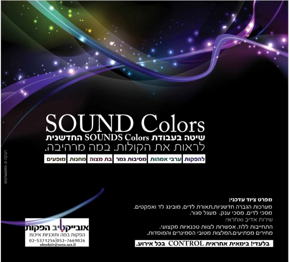 סאונד קולורס- הגברה,תאורה,מסכים ובמות ליגה של הפקה!Tabs פרטי העסק הפקת אירוע מא-ת:הגברה, תאורה מרהיבה,מסכי לד, במות וחיפוי מקצהגברה איכותית לאירועים וכנסים. תאורה חדשנית ומתוכנתת ברמה גבוהה. מסכי לדים מעוצבים וסטריפים. שירות בנית מולטימדיה תלת מימד. אפשרות לגנרטור בכל שטח פתוח והפקת אירוע שטח. שירות הדמיה ובניה בין לקוחותנו: סמינר סניף בית שמש, סמינר ויזניץ בית שמש, בית יעקב הר נוף, בית יעקב עטרת שיח, סמינר מורשת בית שמש, תבונות, סמינר מעלות שרה, עירית ירושלים, עירית ראשל"צ, עירית חולון, כינוסי בחירות ועוד קהל יעד: אבות ובניםגבריםילדות יסודיילדיםלכל המשפחהנוער- בניםנערותנשיםנשים ונערותטווח מחירים: מחירים מוזלים במיוחד!לתשומת לבכם: מופיעים בכל חלקי הארץמגיעים עם כל הציוד הנדרשאזור פעילות: כל הארץמבצעים ודילים: מסכי לד במחירי רצפה!מבצע ענקיוני 2019התקשרו וציינו שהגעתם דרך אתר בתוכנית ותקבלו השכרת מסכי לד במחיר רצפה ובאיכות גבוהה! שתף זאת: